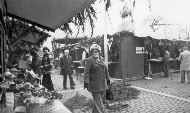 Dann im Jahre 1977 änderte man den Standort und zog mit den Buden auf den Platz vor dem Marstall, wo viele Jahre rund um den Großen Kurfürsten der Weihnachtsmarkt stattfand, wie sich viele Klever/innen noch erinnern werden.