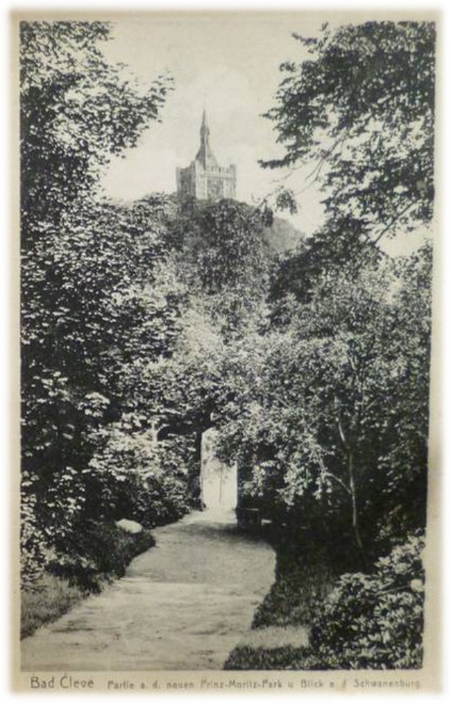Im damaligen wohl neuen Prinz-Moritz-Park sehen wir den Wasserfall, der in einen Bach mündet. Oder handelt es sich um eine optische Täuschung auf dieser uralten Bildkarte? Wäre aber sehr schön gewesen – der Wasserfall. Vielleicht findet ihn ja jemand.