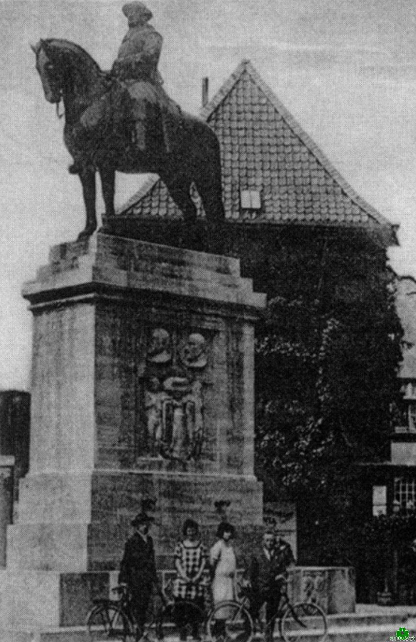 Der Grosse Kurfürst vor dem Efeuturm? Es sieht tatsächlich so aus, als würde das Reiterstandbild des Kurfürsten vor dem Dr.-Arntz-Turm stehen. Dies war auch zu dieser Zeit jedoch nicht der Fall. Der Standort war damals auf dem Kleiner Markt.