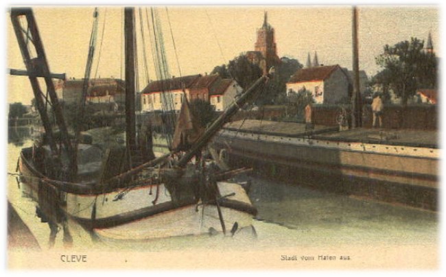 So wirklich groß war er ja nie, unser Hafen. Daher gab es früher oft einen regelrechten Stau auf dem Spoykanal und die Schiffe waren genötigt, sich einzureihen und viel Geduld aufzubringen, zumal sie noch alle durch die Schleuse in Brienen mussten. Schiffe wie die auf dieser alten Karte sieht man heutzutage nicht mehr im Klever Hafen. Echt schade. Aber die Burg sieht aktuell ja auch anders aus. Die Zeiten ändern sich. Immer.