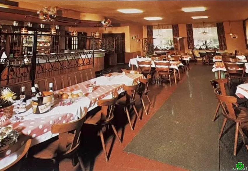 Der Tisch ist gedeckt im Schweizerhaus Wer jemals dort gegessen hat, wird sich mit Wehmut an diesen Anblick erinnern. Wir sehen hier den unvergessenen Speisesall des Schweizerhaus.