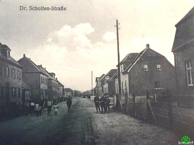 Zum Zeitpunkt der Aufnahme dieses Bildes war die Dr. Scholten-Straße noch nicht befestigt und verfügte weder über Straßenbelag noch Kopfsteinpflaster. Wie immer in dieser Zeit, rief der Auftritt eines Fotografen große Neugier hervor. So auch hier. Schnell fanden sich ganze Familien ein, um sich ablichten zu lassen. 🙂