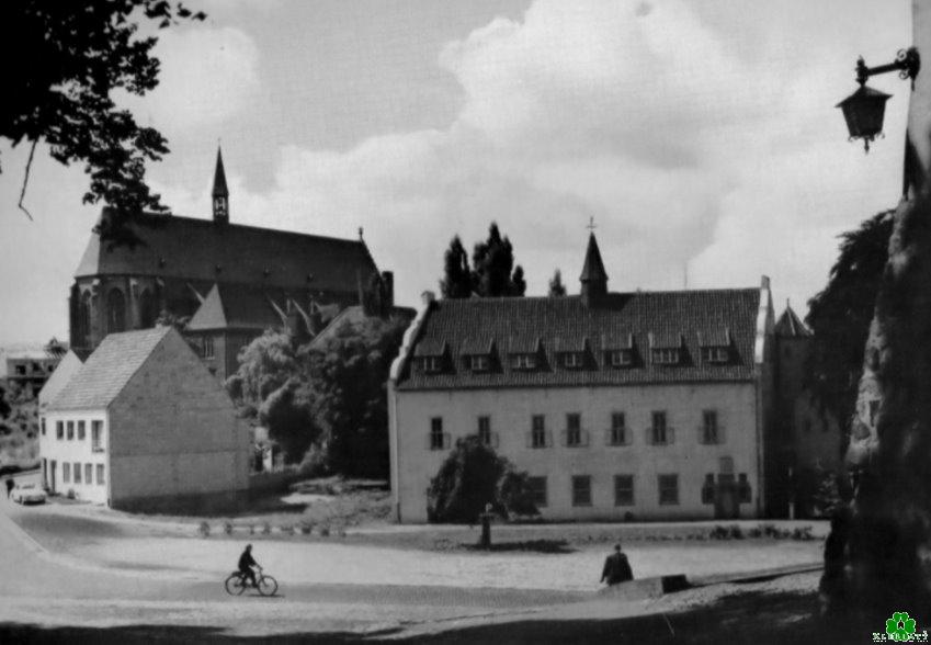 Die alte Laterne am Marstall Wir sehen sie hier rechts am Bildrand. Sowas dürfte heutzutage wieder beliebt sein. Der Kurfürst stand mit seinem Pferd noch nicht an diesem Ort. Die Stiftskirche hatte ihre Türme noch nicht.