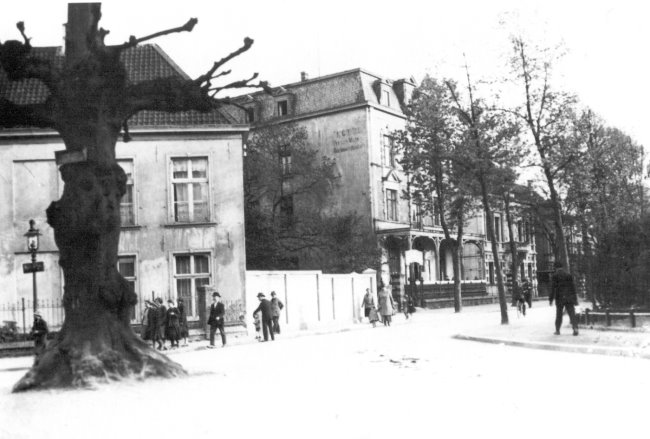 Der Baum war davor und viel früher sehr schön geschnitten, wurde aber bereits in den Dreißigern abgeholzt. Sie stand in der Nähe der Lindenallee vor dem Hagschen Tor in der Nähe des Melatenhauses. Das Haus hinter dem Lindenbaum wurde Anfang des Jahrhunderts als Landwirtschaftsschule genutzt und beherbergte in den Dreißigern bis zur Zerstörung 1944 Raum für die Schätze des „Cleverland-Museums“.