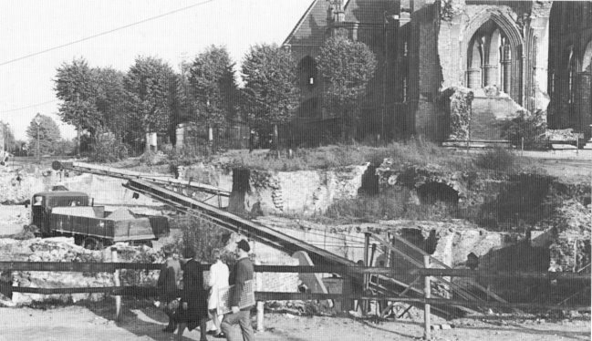 Im Jahre 1950 stehen einige Beobachter vor dem Zaun der Baugrube der Sparkasse. Dahinter frei einsehbar auch die Ruine der Stiftskirche. Es war die Zeit, als die halbe Klever Bevölkerung immer noch damit beschäftigt war, die Schuttberge aus dem Krieg zu beseitigen und die zerstörten Gebäude und Häuser wieder aufzubauen. Es ist nicht immer gut gelungen. 😉