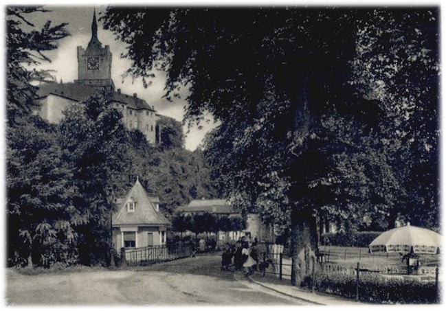 Die Bootsstation im alten Bad Cleve Auf diesem wundervollen Bild vom alten Bad Cleve sehen wir das Treiben in der Nähe der Bootsstation, die sich im Gegensatz zu heute, damals auf der gegenüber liegenden Uferseite des Kermisdahl befand.