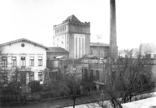 Leider markierte der erste Weltkrieg den Schlusspunkt für die „Clever Ölmühle“ an der Emmericher Straße in Kleve. Das Werk des Klever Fabrikanten Wilhelm Mentrop produzierte dort Speiseöl und Leinkuchen speziell für den niederländischen Markt. Im Unternehmen waren 70 Mitarbeiter beschäftigt. Im Haus vorne links residierte der Chef persönlich.
