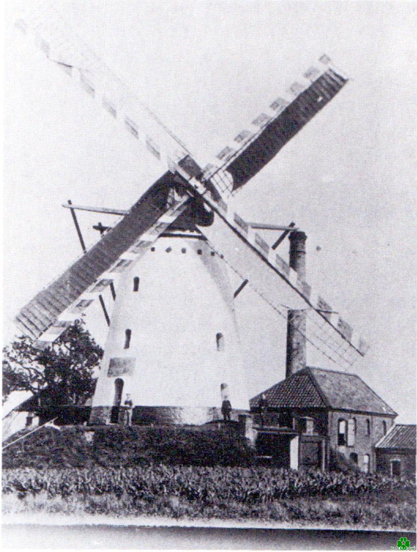 Sie hatte eine sehr lange und abwechslungsreiche Geschichte. Hier sehen wir das Bauwerk im Jahre 1912. Diese Turmwindmühle beherbergte zeitweise sogar die Molkereigenossenschaft Hasselt und wurde zuletzt nicht mehr mit Wind, sondern mit Motorkraft betrieben. !936/37 wurde sie dann schlussendlich abgebrochen.