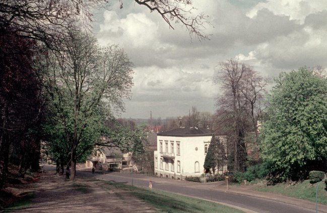 Seit Generationen kennen die Klever nur die Bezeichnung „Gruft“ für die Gruftstraße. Hier sehen wir ein prächtiges Bild aus anderen Zeiten, als die Straße noch nicht so befahren war. Links der eindrucksvolle Eingang zum Tiergartenwald.