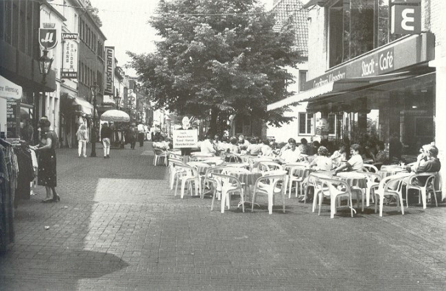 Ende der Achziger Jahre bot sich dem Betrachter dann schon dieses Bild von der Kavarinerstraße. Da konnte man bereits die Geschäftsinhaber der Straße als Pioniere des Einzelhandels bezeichnen. Sie waren die ersten, die aufgrund ihrer langjährigen Erfahrungen den Straßenverkauf bzw. Straßenveranstaltungen, Marktstände und teilweise neue Verbraucherverhalten berücksichtigten und danach handelten.