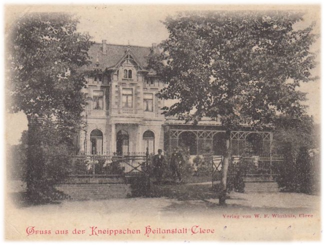 Die Kneippanstalt in Bad Cleve wurde Ende des 19. Jahrhunderts gegründet. Der berühmte Pfarrer Kneipp hatte seine Hydrotherapie gegen akute und chronische Beschwerden mit der methodischen Anwendung von Wasser entwickelt und so wurde zwangsläufig auch in der Bäderstadt Cleve diese Institution sehr beliebt und erfolgreich.