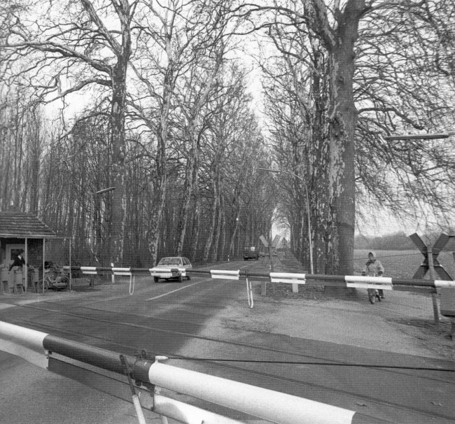 Hier, im Jahre 1977, sehen wir noch den Schrankenwärter, der auf den Zug von oder in Richtung Nimwegen wartet. Die Strecke war übrigens noch bis Sommer 1991 in Betrieb, bevor sie gänzlich still gelegt wurde.