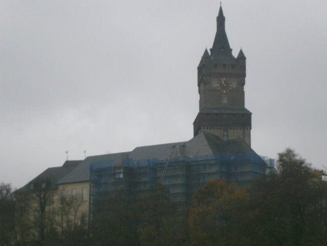 Ein blaues Kleid für die Schwanenburg in Kleve, fast einem Neglige‘ ähnlich, bildet seit ein paar Wochen ein abgedecktes Baugerüst. Die „Einkleidung“ des Klever Wahrzeichens dient Renovierungsarbeiten und fand ungewollt auch Beachtung in einem Fall von Flucht vor dem Kadi. 😉