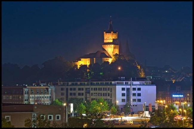 Hier auf diesem Bild sehen wir im Vordergrund das neue Rilano Hotel und im Hintergrund – berechtigterweise angestrahlt – die wunderschöne Schwanenburg.