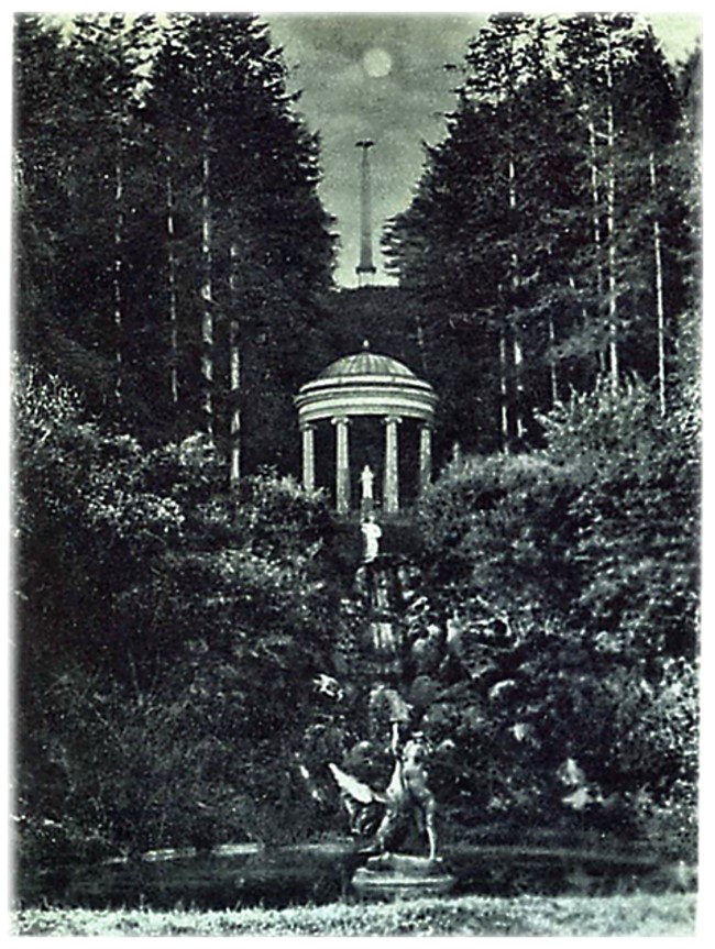 Mit einem Blick auf dieses alte Bild sieht man gleich die damals fünf wichtigsten Hot-Spots im Klever Amphitheater, als da wären von oben nach unten: Ehrenmal mit Kupfernem Knopf, Ceres-Tempel, Ceres-Statue, Minerva- Statue und Cupido. Fehlt eigentlich nur noch der Eiserne Mann, der dieses Foto eventuell geschossen hat. 😉