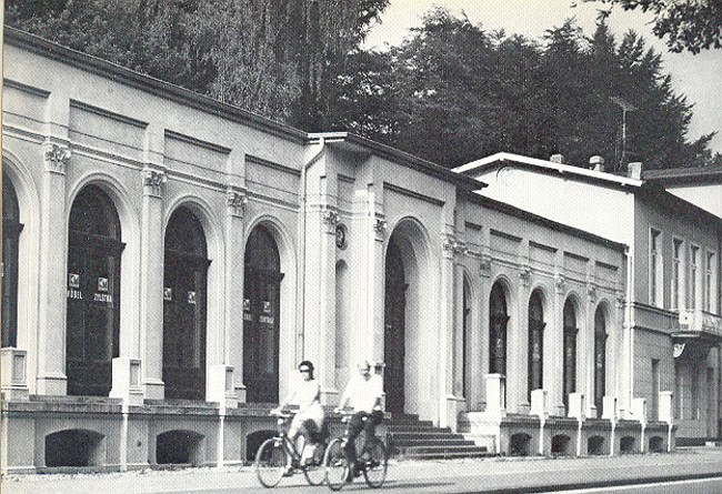 Zwei Menschen radeln hier etwa Mitte der Siebziger Jahre achtlos an der ehemaligen Badehalle des historischen Friedrich-Wilhelms-Bad vorbei. Das hatte sicher auch seinen Grund, denn zu dieser Zeit befand sich hier das Möbellager der Firma Zylstra. Somit war dieses legendäre Klever Gebäude, das zu einem der beliebtesten Anlaufpunkte der Klever Geschichte gehört, ziemlich zweckentfremdet worden. Heutzutage sieht das gottlob wieder anders aus und es lohnt sich wieder, dort einmal mit dem Fahrrad vorbei zu fahren und anschließend hinein zu gehen.