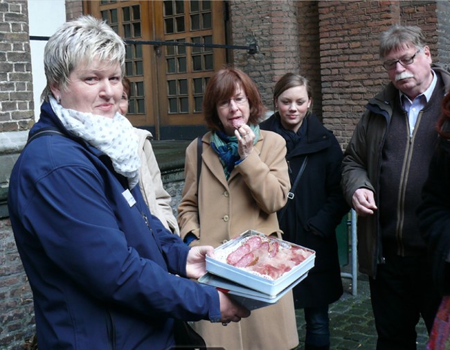 „Ein Häppchen Kleve“ nennt sich dieser Stadtrundgang, den die Stadtführerin Elisabeth Thönnissen dann mit kleinen Probierstückchen aus der Zeit von Ur- und Großmutter schmackhaft verbindet.