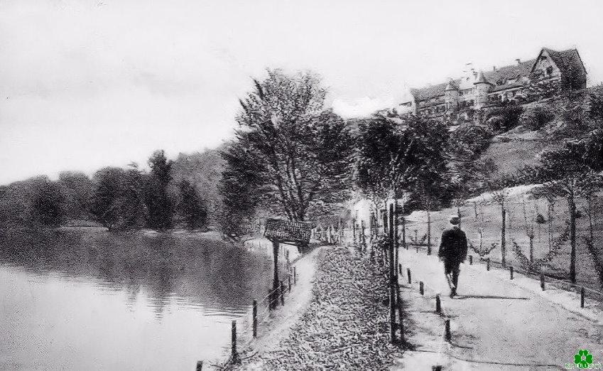 Alles sah noch sehr frei und übersichtlich aus, als sich dieser Herr am Kermisdahlufer aufmachte, um Richtung Prinzenhof zu spazieren. Auffällig und interessant dabei die links und rechts am Wegrand befindlichen Einzäunungen, die vermutlich das Wachstum der Pflanzen schützen sollten, die heute reichlich größer dort stehen. Links sieht man auch etwas, das aussieht wie ein Vogelhäuschen.