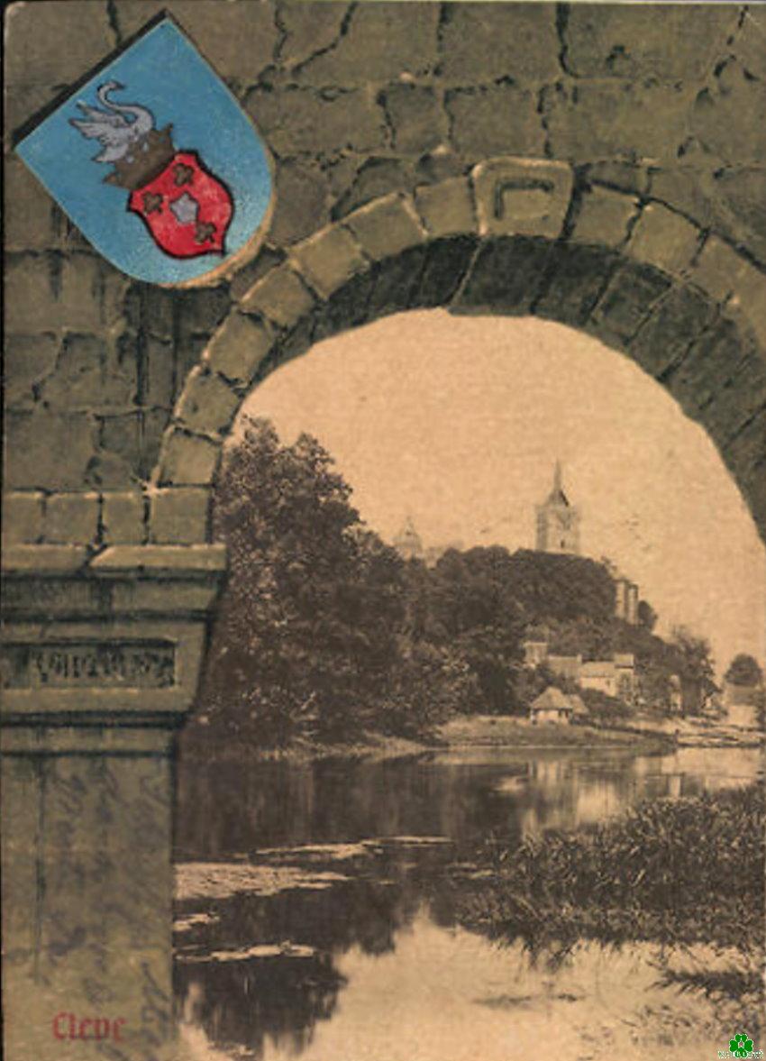 Es ging wohl nur darum, eine interessante Ansichtskarte von Kleve zu gestalten. Der Blick durch das Zwingertor sieht in der Realität selbstverständlich komplett anders aus. Man sieht auf keinen Fall derart auf den Kermisdahl.