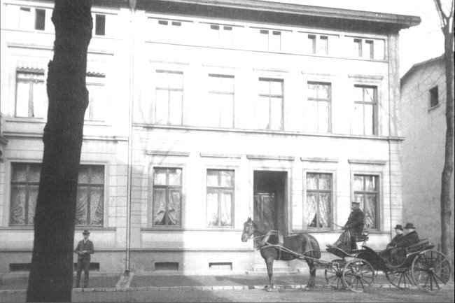 Man steht vor dem Haus von Familie Hintzen, das Mitte des 19. Jahrhunderts errichtet wurde, aber beim Luftangriff 1944 auf Kleve total zerstört wurde. Das Gebäude links (Hausnummer 20) existiert noch.