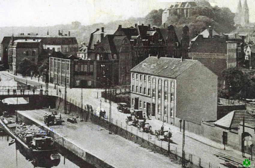 Wir sehen hier den damaligen Hafen und die Herzogbrücke. Hinten links die wirkliche Münze. Die Lichtspiele und die Stiftskirche (oben rechts) und viele andere Gebäude sind noch zu erspähen. Dazu gibt es sicher noch eine Menge zu erzählen.