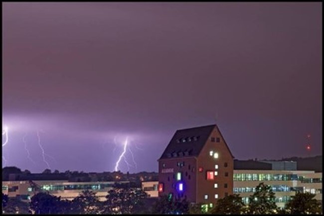 Dieses gelungene Foto zeigt ein Unwetter über Kleve mit kräftigen Blitzen, wie wir es in diesen Tagen wohl des Öfteren erleben werden. (Foto: Udo Kleinendonk)