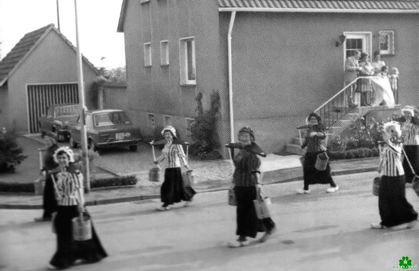 Griethausener Frauen unterm Joch? So heißt das Ding doch, was sie auf ihren Schultern tragen, bestückt mit Eimern. Was wir hier sehen war ein Umzug zum 600 jährigen Bestehen der Griethausener Stadtrechte. Warum diese uralte Last? (Bild gezeigt von Peter Nengel)