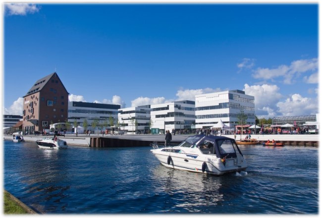 Ein Hafen in Kleve oder in Spanien? Man sollte beim Anblick dieses Bildes kaum vermuten, das es sich um den Hafen von Kleve mit der Hochschule Rhein-Waal im Hintergrund handelt. Es könnte auch irgendwo in Südeuropa sein. (Foto: Udo Kleinendonk)