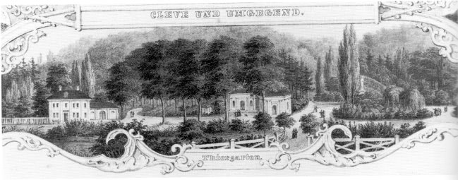 So sah es dort mal aus, bevor das Kurhotel mit dem Kaiser-Friedrichs-Bad entstand. Der Forstgarten war im Bereich Bäume und Pflanzen noch sehr übersichtlich, aber die Schönheiten dieser Ecke von Kleve sind auch in dieser Zeit unübersehbar.
