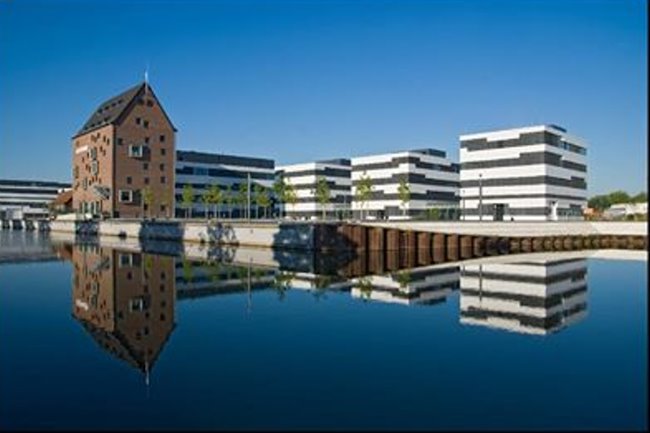 Hochschule Rhein-Waal im Spiegel der Natur Hier spiegelt sich der Campus der Hochschule Rhein-Waal von Kleve im Wasser des Spoykanals. Ein solches Bild gelingt nur bei absoluter Windstille. Ein toller Anblick. 🙂 (Foto: Udo Kleinendonk)