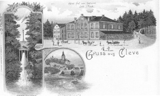 Das Hauptmotiv dieser alten Ansichtskarte ist das Hotel Hof von Holland von Johann Kock, der das Haus von seinem Vater Friedrich im Jahre 1902 übernommen hatte.