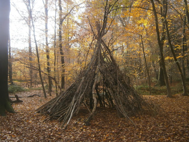 Zumindest scheint es so angesichts dieses „Tippis“ im Wald Nähe des Spielplatzes an der Waldstraße und des „Kupfernen Knopfes“.