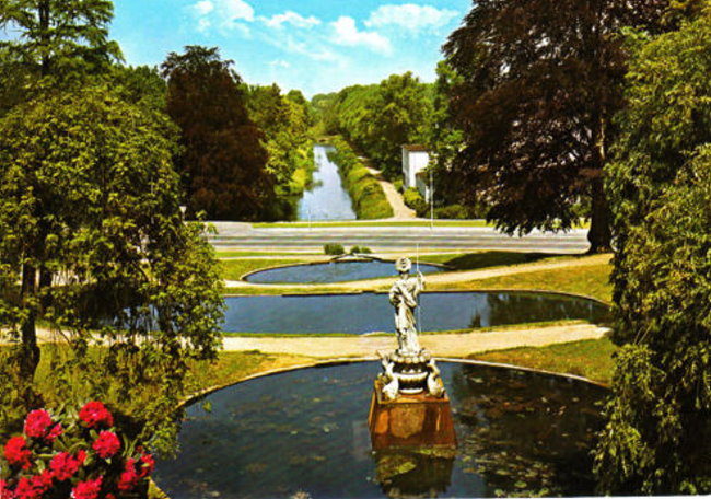 Vom oberen Teil des Amphitheaters schauen wir auf dieser älteren Ansichtskarte hinunter auf die Minerva über die Tiergartenstraße zum Prinz-Moritz-Kanal. Das Foto entstand, als das Kinderheim „Münze“ noch im Forstgarten stand. Es ist das Gebäude oberhalb der Minerva am Wegrand.