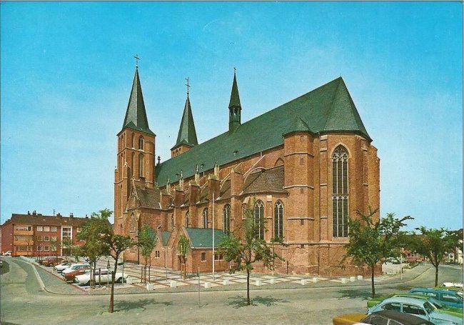 Überall verändert sich in Kleve das Gesicht der Stadt. Zahlreiche historische Gebäude sind nicht nur dem Weltkrieg, sondern auch der Bau- und Abrisswut mancher Stadt-Oberen zum Opfer gefallen. Eine rühmliche Ausnahme bildet die Stiftskirche, die wir hier in den 1970ern sehen. Den Parkplatz rechts unten gibt es zwar nicht mehr, aber ansonsten sieht es dort fast noch genauso aus wie vor 40 Jahren. Selbst die hässlichen Beton-Würfel stehen dort immer noch. Nun – die Bäume sind natürlich ein wenig gewachsen. 😉