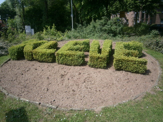 Der Klever Schriftzug als Grünpflanze ist am Stadteingang aus Richtung Goch kommend zu sehen. Wieviele Autofahrer rasen täglich daran vorbei, ohne ihm jemals Beachtung zu schenken. Daher danken wir hier an dieser Stelle einmal den Stadtgärtnern für ihre Arbeit – auch an den Parkanlagen im Stadtgebiet.