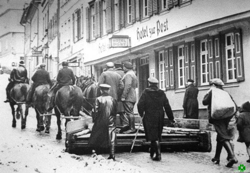 Es waren damals zehn Leute notwendig, um diesen Schneepflug durch die Strassen zu ziehen, damit sie frei wurden. Alleine vier Pferde zogen das Gerät, was den Schnee lediglich zu den Seiten schob. Die Wege blieben wohl trotzdem glatt. Heutzutage reicht ein Fahrer des städtischen Schneeräumfahrzeugs.