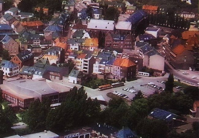 Links sehen wir das große Dach der Stadthalle. Der Parkplatz weist noch zahlreiche freie Parklücken auf. Das Große Gebäude an der Lohstätte war noch nicht gebaut und der spätere „Woolworth-Parkplatz“ war damals noch frei zugänglich, denn das bebaute Spoyufer gab es auch noch nicht. Am Zugang zur Gasthausstraße lag noch ein Baugrundstück brach.