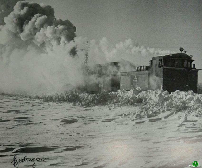 In der Vergangenheit gab es teilweise extreme Winter mit ergiebigen Schneefällen, die auch – wie hier zu sehen – den Zugverkehr lahm legen konnten.