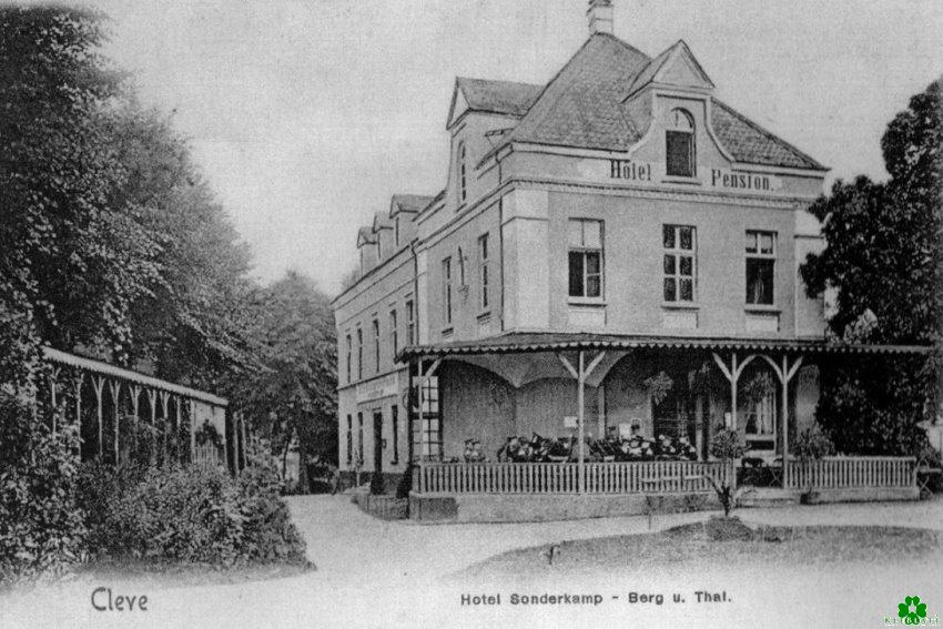 Nun – zu Zeiten dieses Fotos hieß die Pension noch Hotel Sonderkamp – Berg und Thal. Auf der tollen überdachten Terrasse hat es sich eine Musikkapelle gemütlich gemacht. In Ermangelung von Zuschauern muss man davon ausgehen, dass es sich um einen lauten „Lockruf“ für potentielle Gäste handelte oder man übte hier einige Stücke ein. Wer weiß das noch?