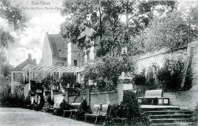 Wo sich einst der Lustgarten mit Orangerie am Prinzenhof befand, konnte man diese wundervolle Anlage mit Sitzbänken und bunt wachsenden Sträuchern bewundern. Wenn man sich das Bild näher betrachtet, so wird man einen Beobachter feststellen, der sich den Fotografen genauer angeschaut hat. Möglicherweise gehörte er dem Mann mit der Kamera…der Hund, der sich auf die erste Bank mittig im Vordergrund in Pose gestellt hat. 😉