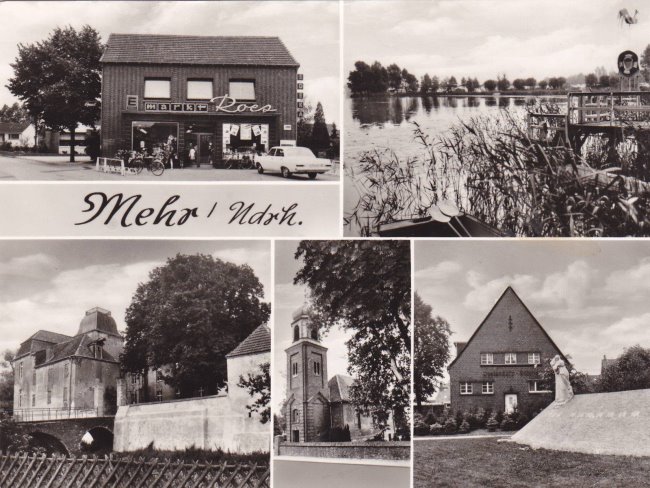 Wer sich für Mehr bei Kleve interessiert, der kann sich hier etwas mehr informieren mit den Bildern dieser Ansichtskarte von Mehr. Mehr geht kaum, zumal man einen Lebensmittelladen als Motiv einer repräsentativen Karte aufgenommen hat. Aber es gibt ja noch mehr in Mehr wie man sieht. 😉