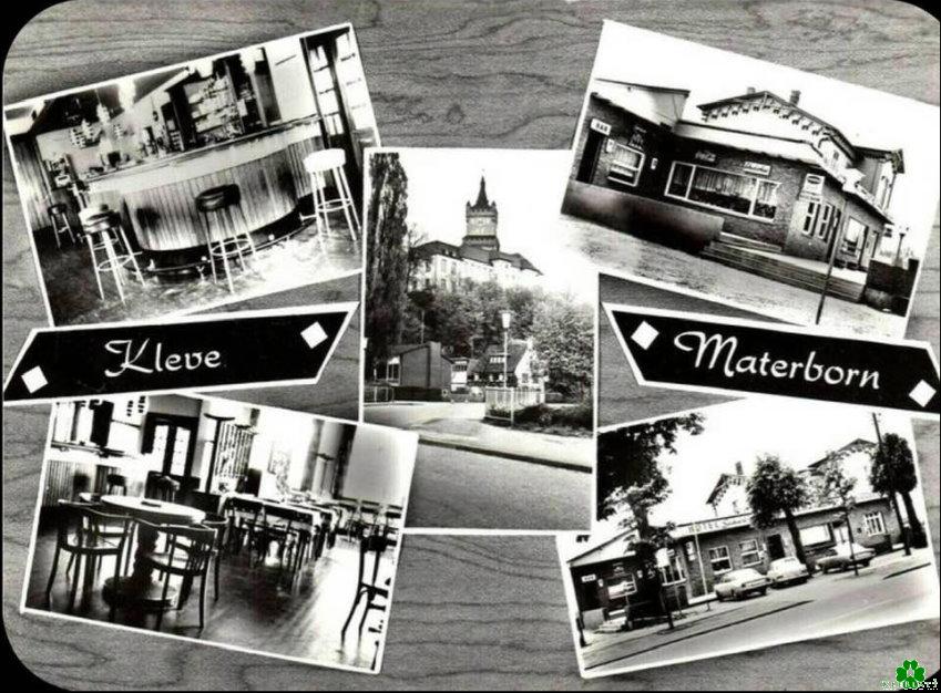 Sah anders aus: Das erste Schweizerhaus Eine alte Ansichtskarte von Kleve-Materborn zeigt nur in der Mitte die Stadt Kleve. Die anderen Bilder zeigen das damalige alte Schweizerhaus von innen und außen.