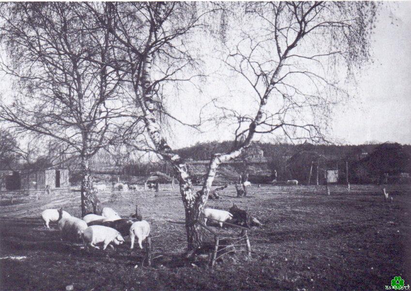 Schon mal was vom Schweinepark gehört? Er befand sich zwischen Alter Bahn und Rosendaler Weg in Bedburg-Hau. Hier sehen wir auf der alten Aufnahme noch die Tiere in ihrem sehr großzügig bemessenen Territorium.
