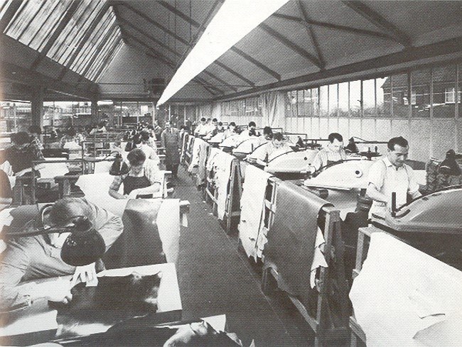 Nicht nur bei den Schuhfabriken Hoffmann und Pannier wurden in Kleve Kinderschuhe produziert, sondern auch bei der Schuhfabrik Bause in Kellen. Auf dem Foto sehen wir die Zuschneiderei und die Stanzerei des Werkes, das mit qualitätsvollen Kinderschuhen internationale Wettbewerbe auf Fachmessen gewann.