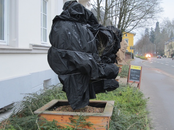 Nun – es hat mit Kunst nur im Auge des Betrachters zu tun. Eigentlich handelt es sich um eine Kübelpflanzenschutz.