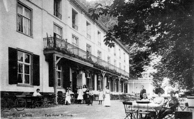 Auch in Zeiten weit vor der heutigen gabe es bereits großartige Lokalitäten in Kleve, die es sich lohnte, aufzusuchen. Wir sehen hier die ehemalige Gartenterrasse des Parhotels Robbers im Tiergartenpark. Auch damals verfügte man schon über adäquate Biergärten, die den Besucher zum Verweilen einluden. Wir sehen die anwesenden Menschen in ihrer für die damalige Zeit typischen Bekleidung, die man heute lediglich noch für historische Filme verwenden kann.