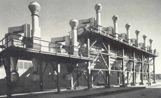 Ob man sie tatsächlich als moderne Umweltschutz-Anlage sehen kann, müssen Spezialisten klären. Auf jeden Fall hatte man damals eine zentrale Entstaubungsanlage installiert, die den von den Maschinen produzierten Staub absaugte, um für frische Luft an den Arbeitsplätzen zu sorgen. Es sieht fast so aus, als wären Filter an oberster Stelle der Rohre installiert. Wenn dem so war, gelangte der Staub auch nicht ungereinigt nach aussen, was für vorausschauenden Umweltschutz sprechen würde.