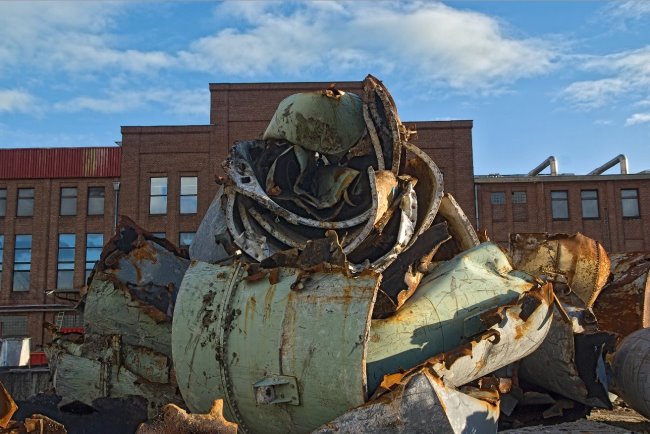 Union-Gelände – Schrott wird Kunst sollte man angesichts dieser Bilder meinen. Der Blechmüll vor der historischen Kulisse der Margarinewerke van-den-Bergh entwickelt sich bei richtiger Betrachtungsweise plötzlich zu einem Kunstwerk.