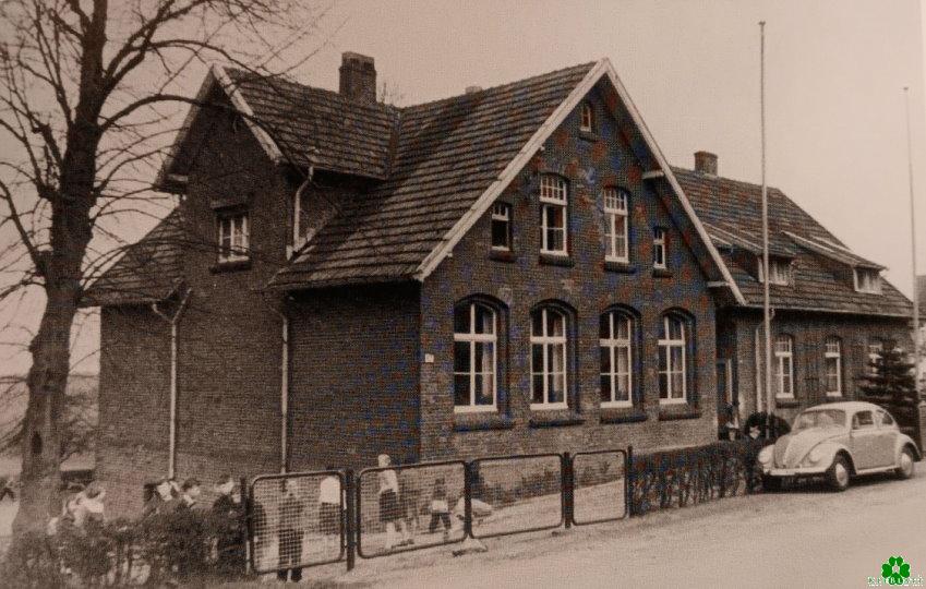 Wer kannte noch die Bresserbergschule? Ein VW-Käfer parkte vor dem Gebäude und die Kinder, die sich wohl gerade in der Pause befanden, hatten vermutlich den Fotografen dieses Bildes entdeckt. Wer kannte diesen Anblick noch? (Bild gezeigt von Dorte Biem)