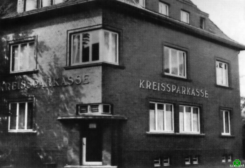Wer kennt denn noch diese Kreissparkasse? Das Bild stammt aus den Fünfzigern und zeigt das Sparkassengebäude in Kellen. Wer kannte es noch und hat seine Pfennige und Marken dahin gebracht?